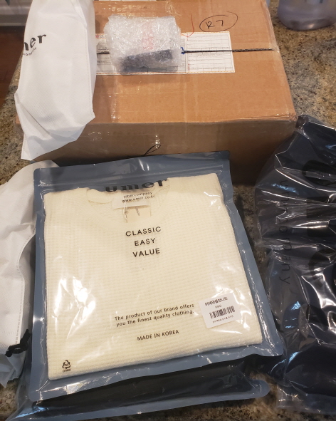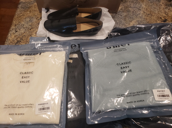 한국에서 이번엔 제옷이랑 신발등 이것저것배송대행했어요
