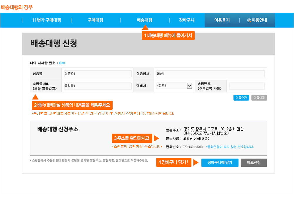 장바구니에 구매대행, 배송대행을